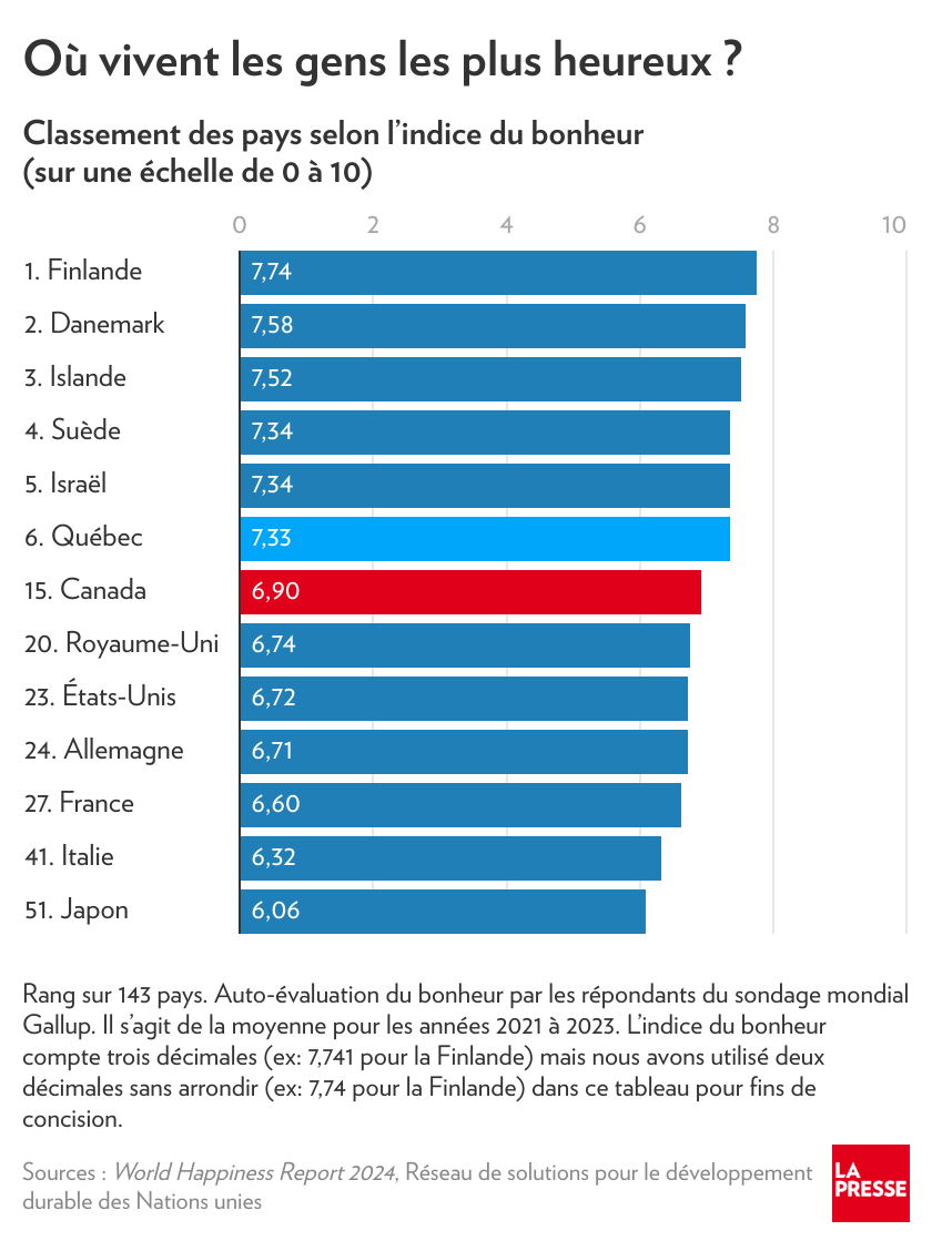 Voici quelques mesures alternatives au PIB pour mesurer le bien-être économique: L'indice de développement humain (IDH) est compilé annuellement par le Programme des Nations Unies pour le Développement (PNUD). Les indicateurs du bien-être au Québec (51indicateurs du Québec ) L'indice du bonheur mondial (Wolrd Happiness Report)