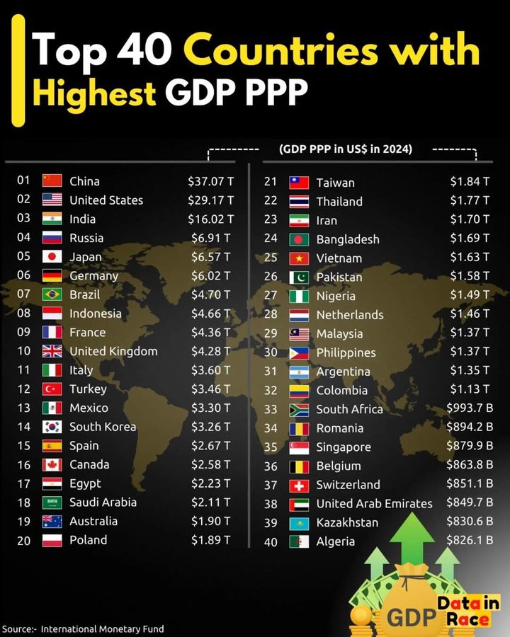 TABLEAU 5 : Les 40 pays ayant les plus gros PIB au monde en 2024 (PPA) : c'est-à-dire ajousté au coût de la vie.