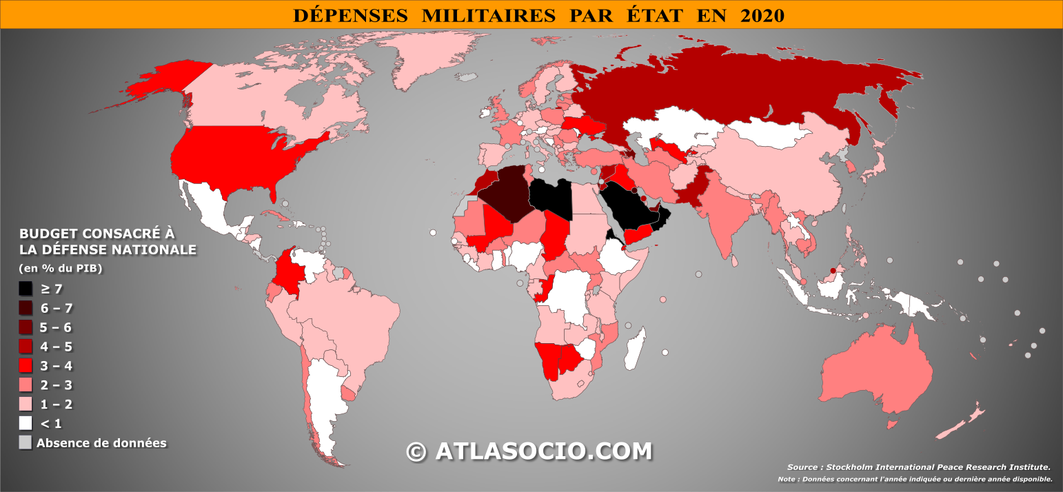 TABLEAU 6 : Les dépenses militaires par pays en % du PIB en 2020.