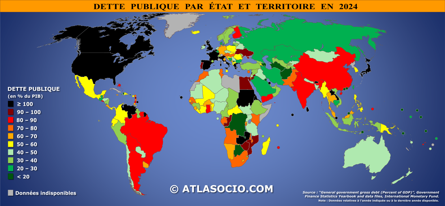 TABLEAU 5 : Niveau d'endettement public en % du PIB par pays.
